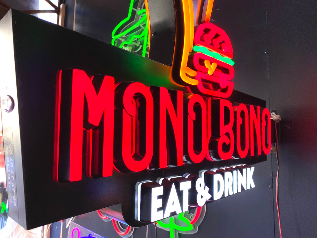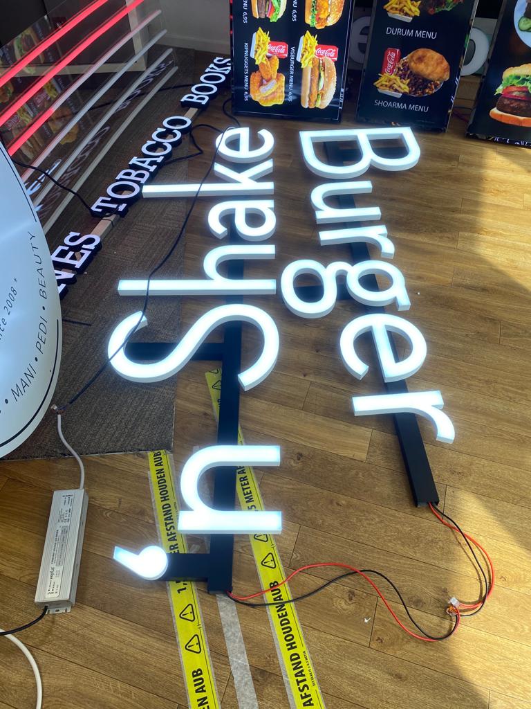 Led letters, led logos en dubbelzijdige lichtbakken voor binnen- en buitengebruik.